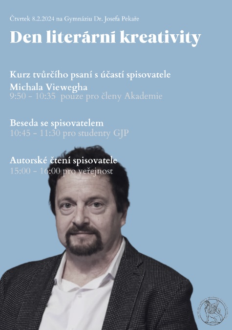 Michal Viewegh byl hostem čtvrtého ročníku Dne literární kreativity (8. 2. 2024). Nejprve byl svědkem lekce tvůrčího psaní, posléze byl zpovídán v aule moderátorem a nakonec pro veřejnost přečetl jednu ze svých povídek a zodpověděl i palčivé dotazy publika.